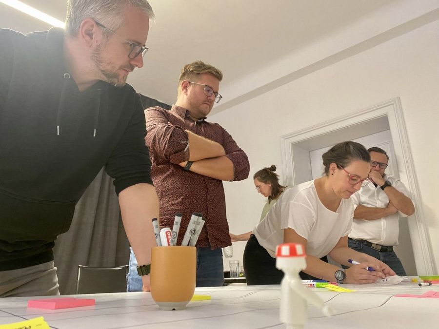 Ein absoluter Augenöffner bei jeder Transformation und Neuausrichtung eines Unternehmens: der Perspektivwechsel in die Sicht der Kund:innen. Zu diesem Zweck haben wir Ende letzten Jahres die beiden Geschäftsführer und den betriebswirtschaftlichen Leiter zu uns nach Salzburg eingeladen. Auf dem Programm stand ein ganztägiger Customer Journey Workshop. Anhand von zentralen Fragestellungen zu allen Phasen der Kundenreise fanden wir heraus, an welchen Touchpoints (Berührungspunkten zwischen Unternehmen und Kund:in) noch ungenutzes Potenzial liegt – sei es in Bezug auf die Kommunikation oder die Optimierung interner Prozesse.